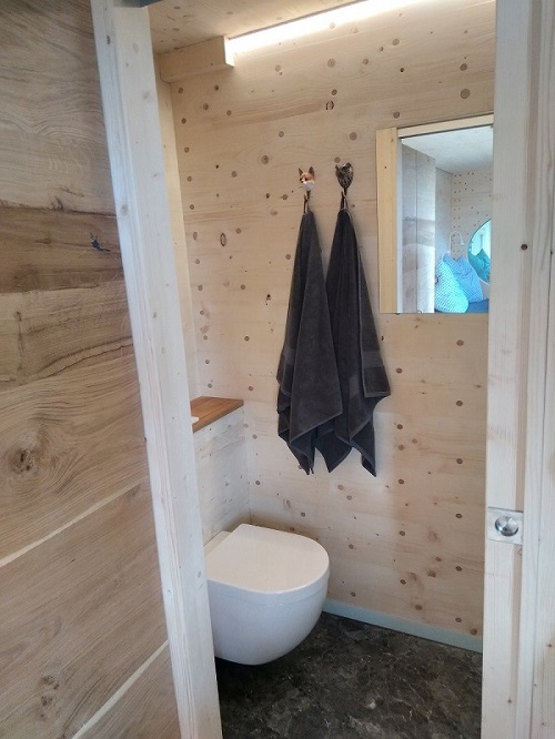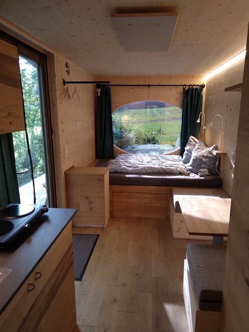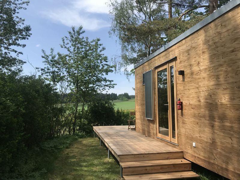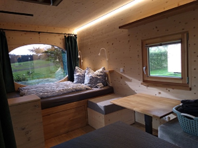 Wenn der Tag zu Ende geht sorgt die spezielle Vollholzbauweise für ein wohliges Klima und prima Schlaf. Augestattet mit kleiner Küche, Dusche und WC könnt Ihr von hier aus das Fichtelgebirge oder das nahe gelegene Tschechien völlig autark entdecken und am Abend mit Blick auf den Sonnenuntergang Entspannung pur genießen.